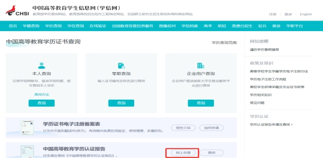 说明:“学信网”上查不到学历信息的申请人必须申请获得教育部“中国高等教育学历认证报告”。