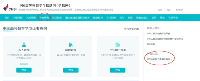 说明:若申请人在“学信网”上查不到学位证书信息,应申请获得教育部“中国高等教育学位认证报告”,具体流程详见下图。
