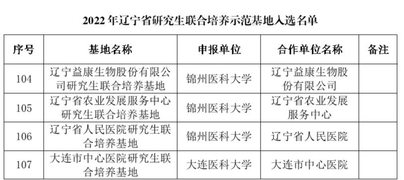 近日,辽宁省教育厅发布《2022年辽宁省研究生联合培养示范基地入选名单》,我校申报的3个省级专业学位研究生联合培养示范基地成功获批。同时,大连润生康泰医学检验室有限公司药学专业学位研究生联合培养示范基地顺利通过检查评估。